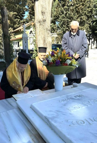Η Α.Θ. Παναγιότης ο Οικουμενικός Πατριάρχης κ.κ. Βαρθολομαίος, σήμερα, Δευτέρα, 9 Μαρτίου 2026, κατά την οποία η Εκκλησία μας τιμά τη μνήμη των Αγίων Τεσσαράκοντα Μαρτύρων, μετέβη στο Κοιμητήριο Αγίου Ιγνατίου Χαλκηδόνος, συνοδευόμενος από τον οικείο Ποιμενάρχη Σεβασμιώτατο Μητροπολίτη Γέροντα Χαλκηδόνος κ. Εμμανουήλ και τον Πανοσιολ. Διάκονο κ. Ευλόγιο Τσάτσα, Κωδικογράφο της Αγίας και Ιεράς Συνόδου, και έψαλε τρισάγιο προ του τάφου του Γέροντος Αυτού αειμνήστου Μητροπολίτου Χαλκηδόνος κυρού Μελίτωνος, δεηθείς για την ανάπαυση της ψυχής του εν σκηναίς δικαίων.