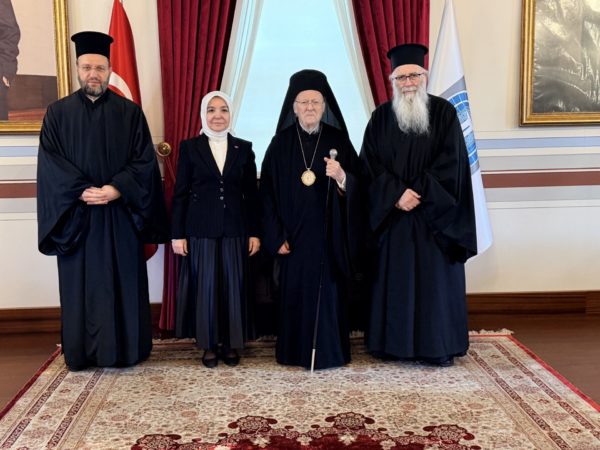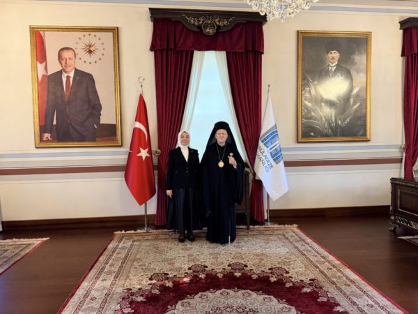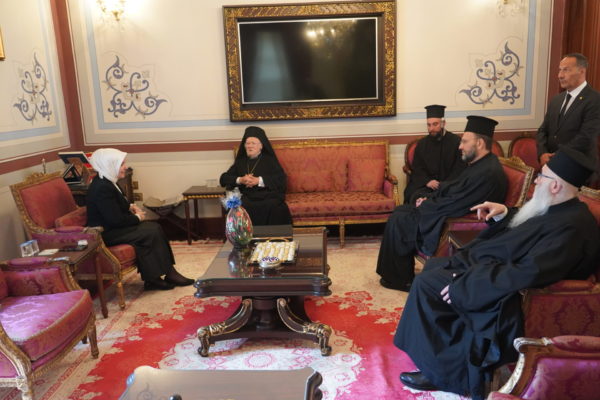 Αμέσως μετά, ο Παναγιώτατος είχε εγκάρδια συνάντηση με την Πρόεδρο του Ιδρύματος κυρία Esra Ceceli İslam, η οποία νωρίτερα τον καλωσόρισε μπροστά από τον Ναό και τον συνόδευσε μέχρι το γραφείο της.