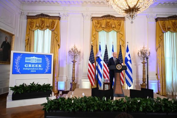 Με θερμά λόγια υποδέχθηκε για μια ακόμη χρόνια ο Πρόεδρος των ΗΠΑ, Τζο Μπάιντεν, επιφανή μέλη της ελληνοαμερικανικής κοινότητας, με επικεφαλής τον Αρχιεπίσκοπο Αμερικής κ. Ελπιδοφόρο, στην δεξίωση για την Ημέρα της Ελληνικής Ανεξαρτησίας στον Λευκό Οίκο. Κατά τον χαιρετισμό του ο Σεβασμιώτατος ευχαρίστησε τον Πρόεδρο Μπάιντεν για την ακλόνητη στήριξή του στην πνευματική αποστολή του Οικουμενικού Πατριαρχείου, καθώς και για τη δέσμευση σε Ελλάδα και Κύπρο για ειρηνική λύση στο ζήτημα της Μεγαλονήσου.