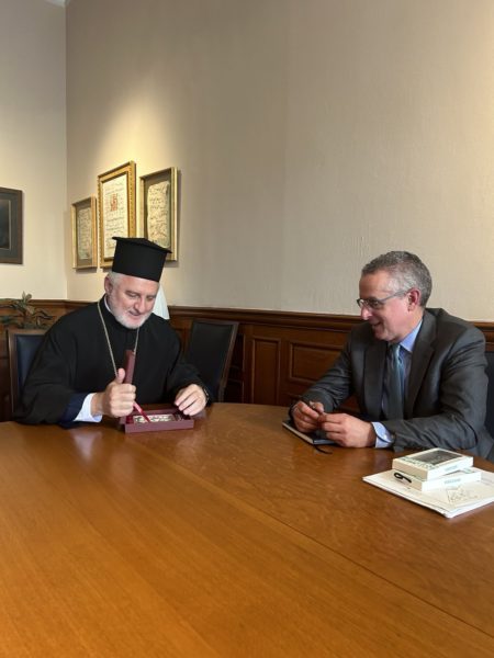 Νωρίτερα το απόγευμα, κατά τη διάρκεια συνάντησης με τον Πρόεδρο Kilpatrick, ο Αρχιεπίσκοπος Ελπιδοφόρος, συνοδευόμενος από τον Δρ. Δημήτριο Κάτο, Πρόεδρο του Ελληνικού Κολλεγίου Τιμίου Σταυρού, συζήτησαν τις ευκαιρίες για στενότερη συνεργασία μεταξύ των ιδρυμάτων τους.