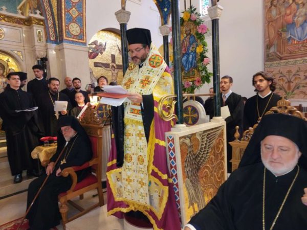 Ακολούθησε η ανάγνωση του Πατριαρχικού και Συνοδικού Γράμματος Ειδήσεως της Εκλογής του Μητροπολίτη κ. Απόστολου από τον αρχιγραμματέα της Ιεράς Επαρχιακής Συνόδου της Ιεράς Αρχιεπισκοπής Αμερικής Επισκόπου Ναζιανζού κ. Αθηναγόρα, ο οποίος μετέφερε και τις ευχές του Οικουμενικού Πατριάρχη κ.κ. Βαρθολομαίου.