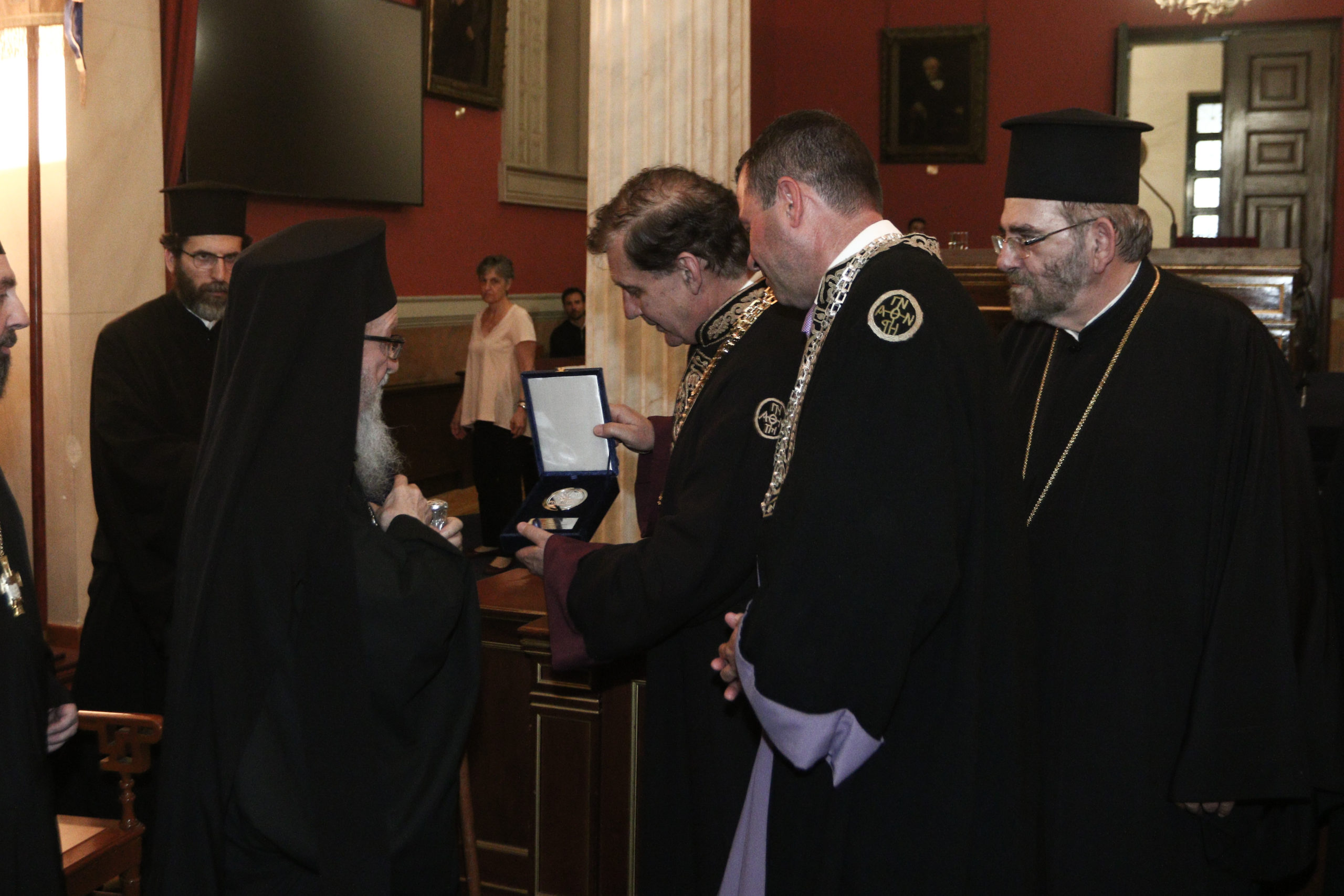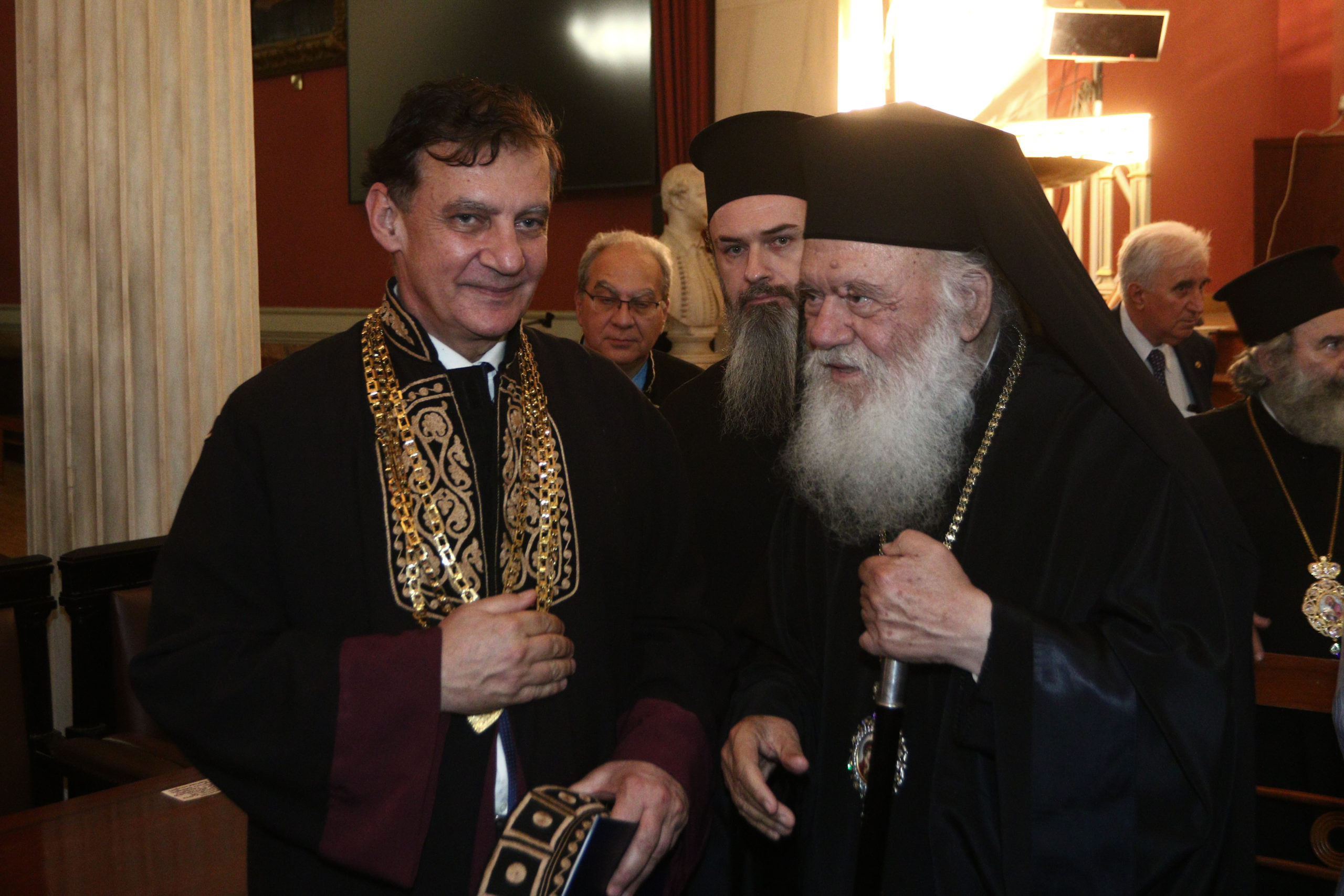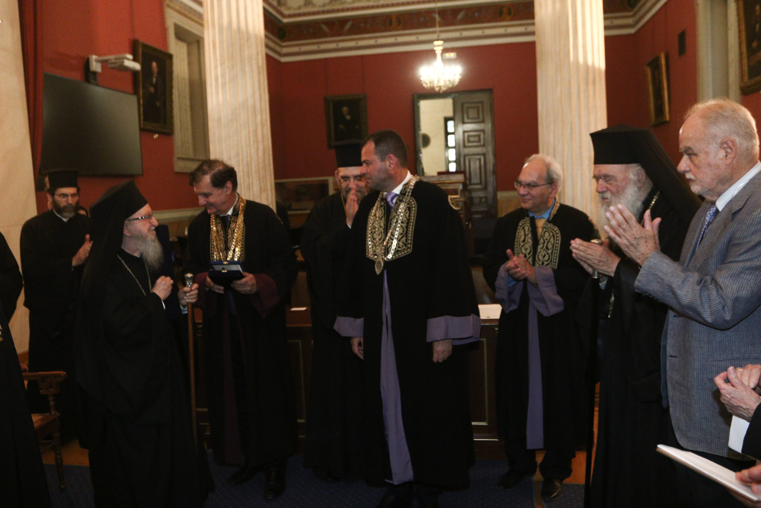 Στην τελετή παραβρέθηκε μεταξύ άλλων ο Αρχιεπίσκοπος Αθηνών και Πάσης Ελλάδος κ.κ. Ιερώνυμος ενώ τον Αρχιεπίσκοπο προσφώνησε ο Πρύτανης του Εθνικού και Καποδιστριακού Πανεπιστημίου Αθηνών, καθηγητή Μελέτιο-Αθανάσιο Κ. Δημόπουλο.