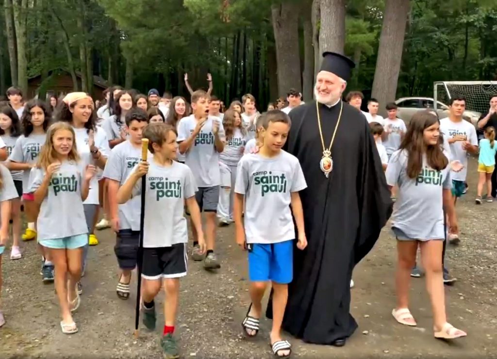 Ο Σεβασμιώτατος Αρχιεπίσκοπος Αμερικής κ. Ελπιδοφόρος φθάνει στο Camp Saint Paul (D.A.D Summer Camping Ministry) στο Litchfield του Κονέκτικατ, όπου τα παιδιά τον υποδέχονται με χαμόγελα και χειροκροτήματα υπό τον ήχο καμπανοκρουσιών.