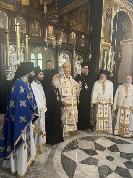 Συμπροσευχόμενοι παρέστησαν ο Διευθυντής του Γραφείου Εκπροσωπήσεως του Οικουμενικού Πατριαρχείου στην Αθήνα, Σεβασμιώτατος Μητροπολίτης Λαοδικείας κ. Θεοδώρητος και ο Σεβασμιώτατος Μητροπολίτης Νέας Ιωνίας και Φιλαδελφείας κ. Γαβριήλ.