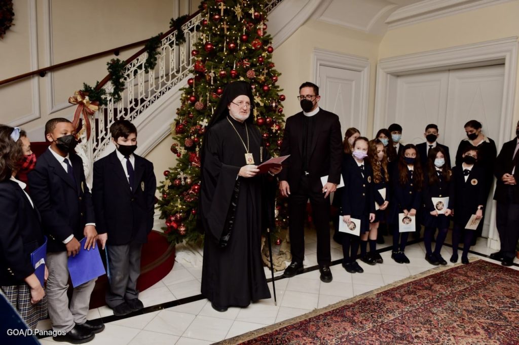 Κατά τη διάρκεια της εκδήλωσης τα μικρά παιδιά έψαλλαν τα Χριστουγεννιάτικα κάλαντα στον Αρχιεπίσκοπο.