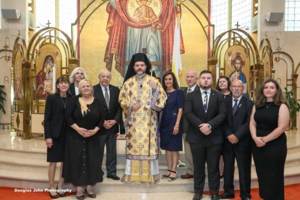 Τον Μητροπολίτη Νέας Ιερσέης Απόστολο πλαισιώνουν αξιωματούχοι Κυπριακών Οργανώσεων και στελέχη της Ελληνοκυπριακής Κοινότητας.