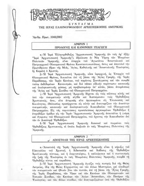 Δείτε το Σύνταγμα της Αρχιεπισκοπής Αμερικής που βρίσκεται σε ισχύ