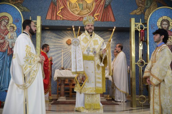 Ο Σεβασμιώτατος τέλεσε τον Όρθρο και την Αρχιερατική Θεία Λειτουργία με τη συνδρομή του π. Πέτρου, του π. Νείλου Μπέβερλι, του π. Στέφανου Αλεξόπουλου και του Αιδεσιμότατου Μιχαήλ Πρέβα, ο οποίος ήταν επισκέπτης από την Καλιφόρνια. Στο κήρυγμα, ο Σεβασμιώτατος εστίασε στο Ευαγγελικό ανάγνωσμα της ημέρας για τον Παραλυτικό, αναλογιζόμενος ότι όπως ο άνθρωπος που υπέφερε για 38 χρόνια θεραπεύτηκε από τον Χριστό, έτσι και όλοι μας μπορούμε να θεραπευτούμε πνευματικά από τον Κύριο και Σωτήρα μας.
