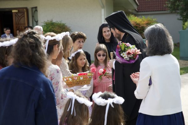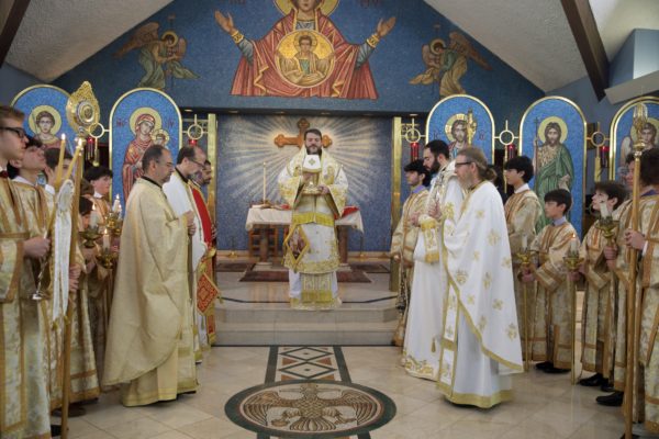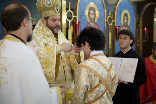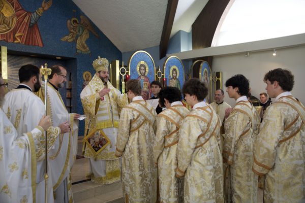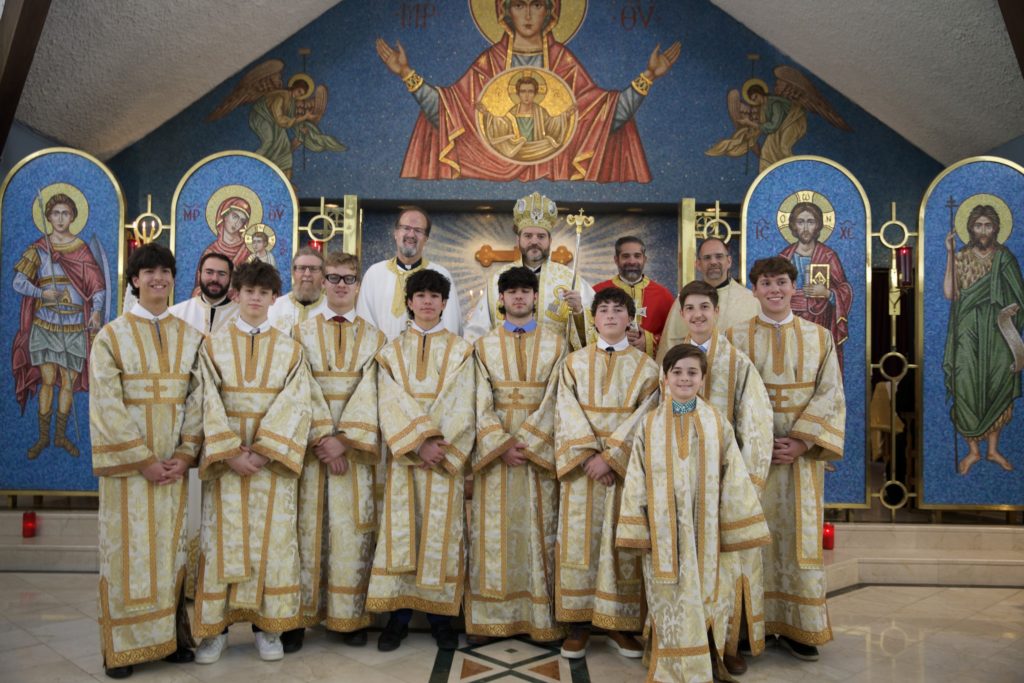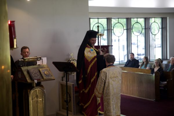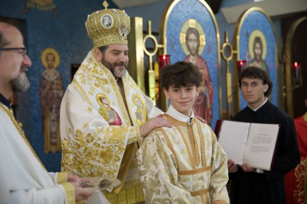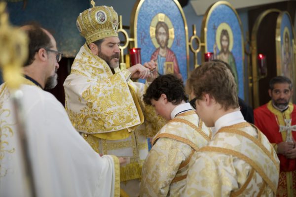 Στο τέλος της Θείας Λειτουργίας, ο Σεβασμιώτατος ευλόγησε την κοινότητα καθώς έκειρε νέους άνδρες της ενορίας ως Βοηθούς και Αναγνώστες της Ορθόδοξης Εκκλησίας, δίνοντάς τους την ευλογία να υπηρετούν στο Ιερό Βήμα και να διαβάζουν από το Ψαλτήρι.
