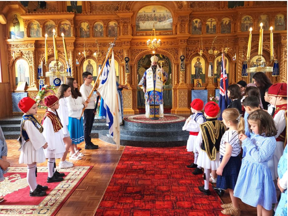 Επιπλέον, συνεχάρη όσους οργάνωσαν την πόλη της Καμπέρας τον στολισμό με ελληνικές σημαίες, ωστόσο τόνισε ότι προτιμά να δει την εκκλησία γεμάτη κόσμο παρά παντού σημαίες.