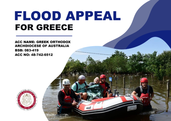 Η Ιερά Αρχιεπισκοπή Αυστραλίας, με πρωτοβουλία και με την ευλογία του Σεβασμιωτάτου Αρχιεπισκόπου κ. Μακαρίου, οργανώνει έκτακτο έρανο για τη συγκέντρωση χρημάτων, με σκοπό την υποστήριξη των πλημμυροπαθών της Θεσσαλίας.