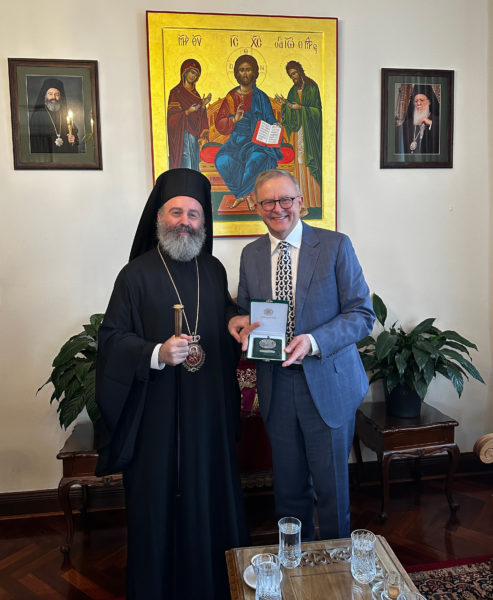 Αυτό συνομολογήθηκε κατά τη συνάντηση που είχαν την Κυριακή, 2 Ιουλίου, ο Σεβασμιώτατος Αρχιεπίσκοπος Αυστραλίας κ. Μακάριος και ο Ομοσπονδιακός Πρωθυπουργός της Αυστραλίας, κ. Anthony Albanese. Ο κ. Albanese επισκέφθηκε την έδρα της Ιεράς Αρχιεπισκοπής στο Σύδνεϋ, συνοδευόμενος από τον ομογενή υπουργό Πολυπολιτισμικότητας της Νέας Νοτίου Ουαλίας, κ. Steve Kamper, και έτυχαν θερμής υποδοχής από τον Σεβασμιώτατο κ. Μακάριο, πλαισιούμενο από τους Θεοφιλεστάτους Επισκόπους Κυανέων κ. Ελπίδιο και Χαριουπόλεως κ. Βαρθολομαίο, και από τον Πρωτοσύγκελλο, Πανοσιολογιώτατο Αρχιμανδρίτη του Οικουμενικού Θρόνου κ. Χριστοφόρο Κρικέλη.