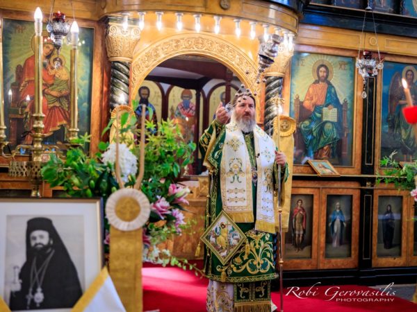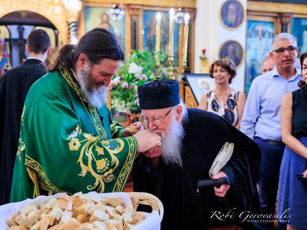 Πριν τη διανομή του αντίδωρου, ο Θεοφιλέστατος ευχήθηκε καταλλήλως για την ονομαστική εορτή του νεότερου ενορίτη της Ενορίας Αγίων Κωνσταντίνου και Ελένης, του Στυλιανού Γεροβασίλη, ο οποίος είναι μόλις 5 μηνών.