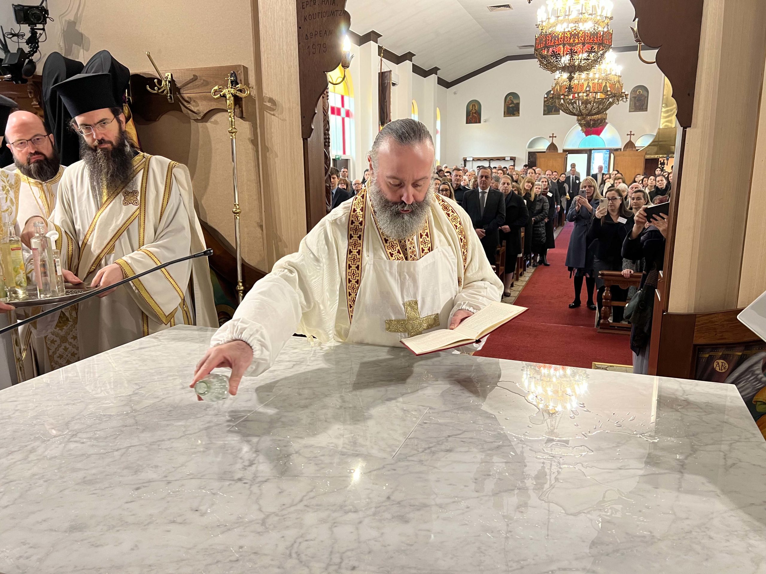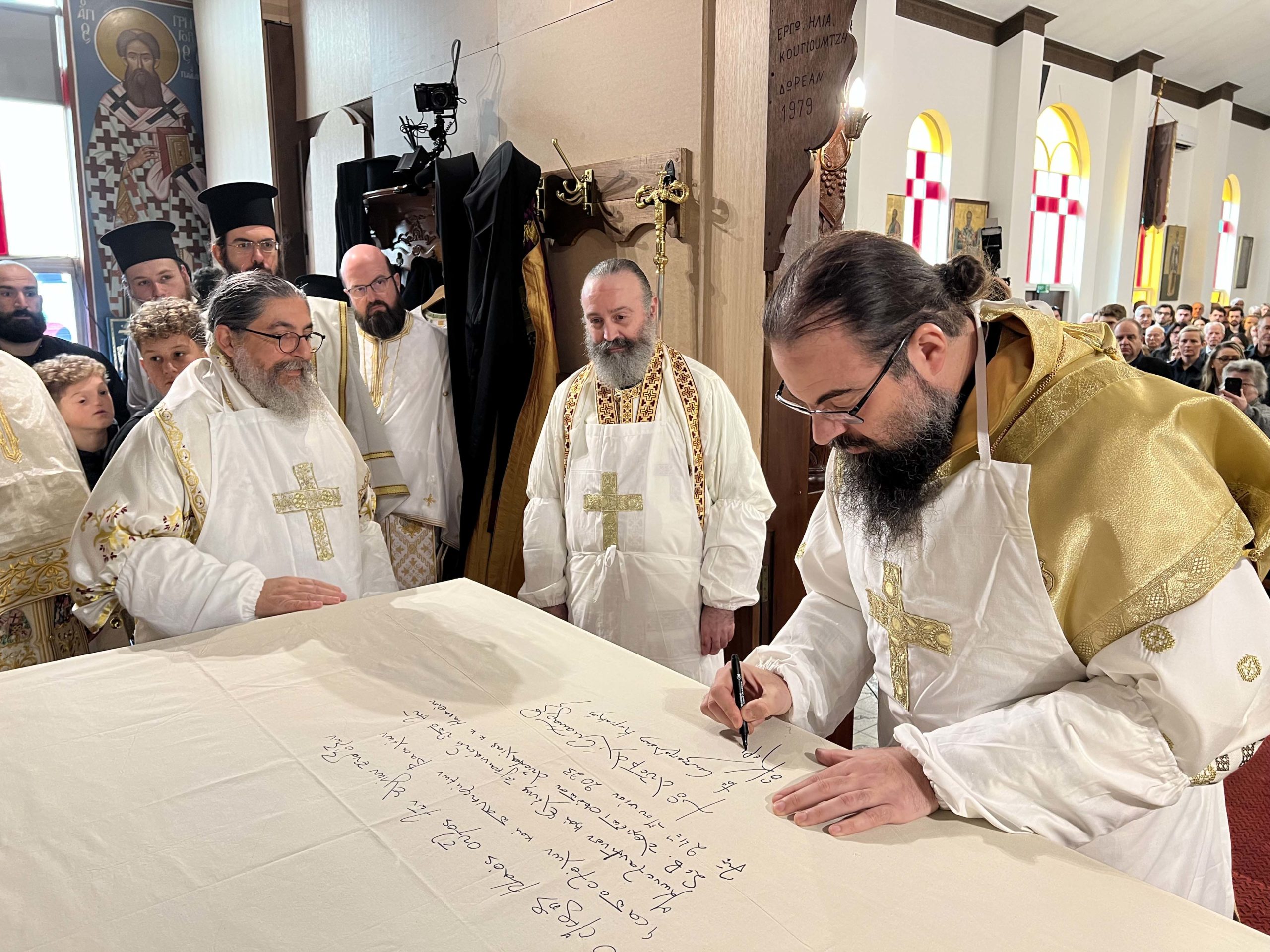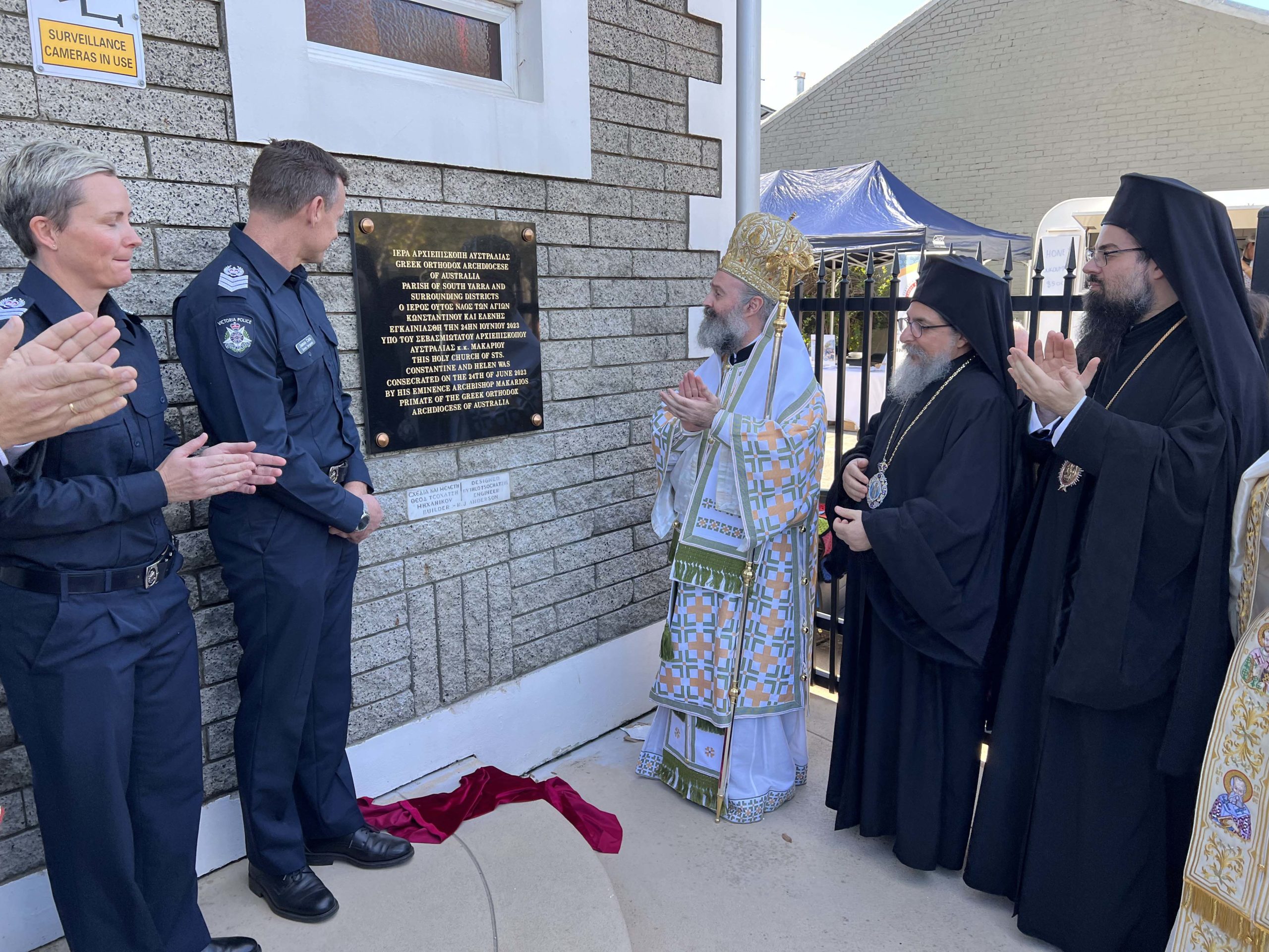 Της τελετής προέστη ο Σεβασμιώτατος Αρχιεπίσκοπος Αυστραλίας κ.κ. Μακάριος, ο οποίος στη συνέχεια προεξήρχε και της Θείας Λειτουργίας,πλαισιούμενος από τους Αρχιεπισκοπικούς Επιτρόπους Μελβούρνης και Northcote, Θεοφιλεστάτους Επισκόπους Σωζοπόλεως κ. Κυριακό και Κερασούντος κ. Ευμένιο, και από κληρικούς των δύο Αρχιεπισκοπικών Περιφερειών της Βικτώριας.