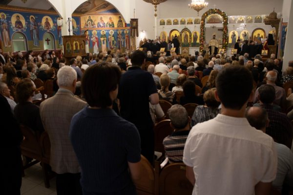 Αναλυτικότερα, το απόγευμα της Κυριακής τελέστηκε σε κλίμα κατανύξεως ο Πανηγυρικός Εσπερινός χοροστατούντος του Θεοφιλεστάτου κ. Κυριακού, πλαισιουμένου από αρκετούς κληρικούς της Ιεράς Επισκοπής Μελβούρνης.