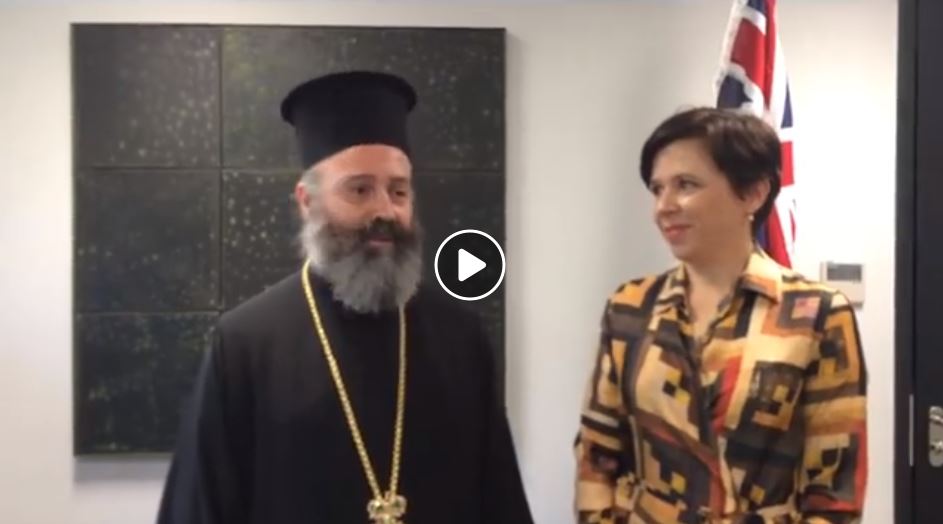 Επίκαιρη συνάντηση του νέου, εψηφισμένου Αρχιεπισκόπου Αυστραλίας, κ. Μακαρίου, στην Πρεσβεία της Αυστραλίας στην Αθήνα, με τη διπλωμάτη και στέλεχος της Αυστραλιανής Πρεσβείας στην ελληνική πρωτεύουσα (Chargé d’Affaires) κα Sophia McIntyre. Παρακολουθήστε: