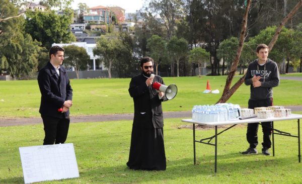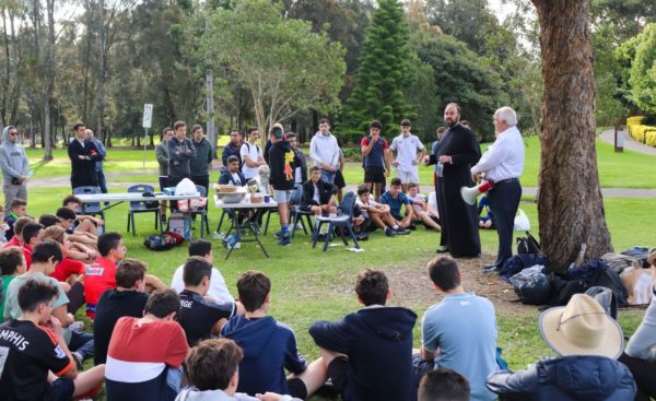 Μετά από τρεις γύρους, έκαναν ένα μικρό διάλειμμα από τους αγώνες και συγκεντρώθηκαν για να ακούσουν τον π. Σωφρόνιο από την εκκλησία του Τιμίου Σταυρού στο Wollongong, ο οποίος μίλησε για την αξία του αθλητισμού και παρομοίασε τον πνευματικό αγώνα με τις αθλητικές προσπάθειες που κατέβαλαν τα αγόρια.