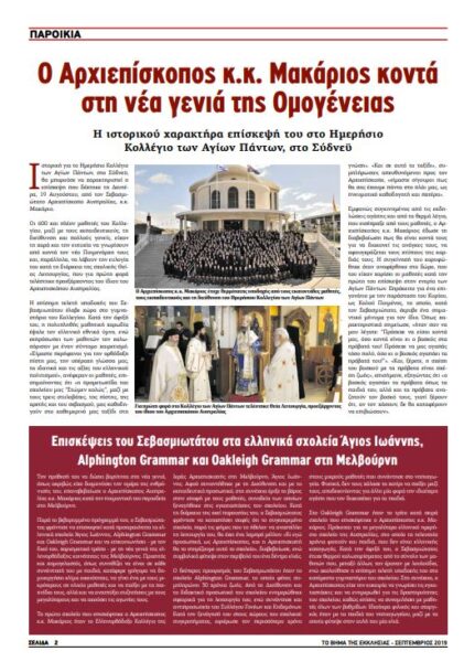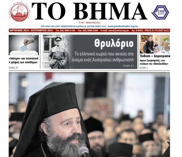 Η έκδοση του ΒΗΜΑΤΟΣ ΤΗΣ ΕΚΚΛΗΣΙΑΣ (Αυστραλία), Σεπτεμβρίου 2019, έχοντας στο εξώφυλλο της, τον Σεβ. Αρχιεπίσκοπο Αυστραλίας, κ. Μακάριο.