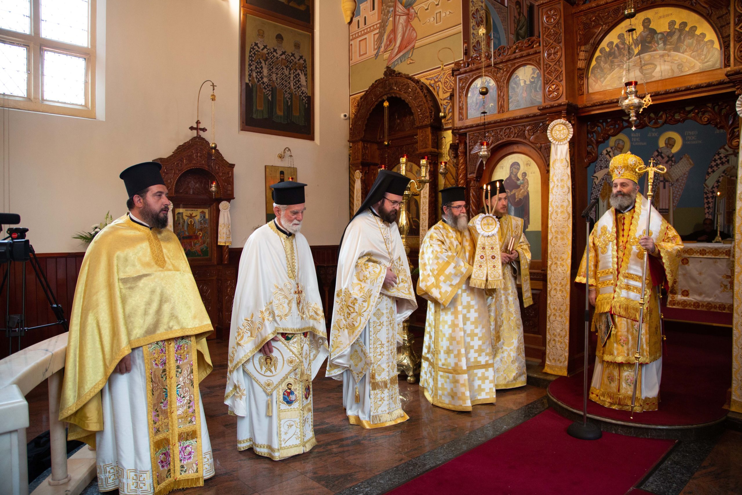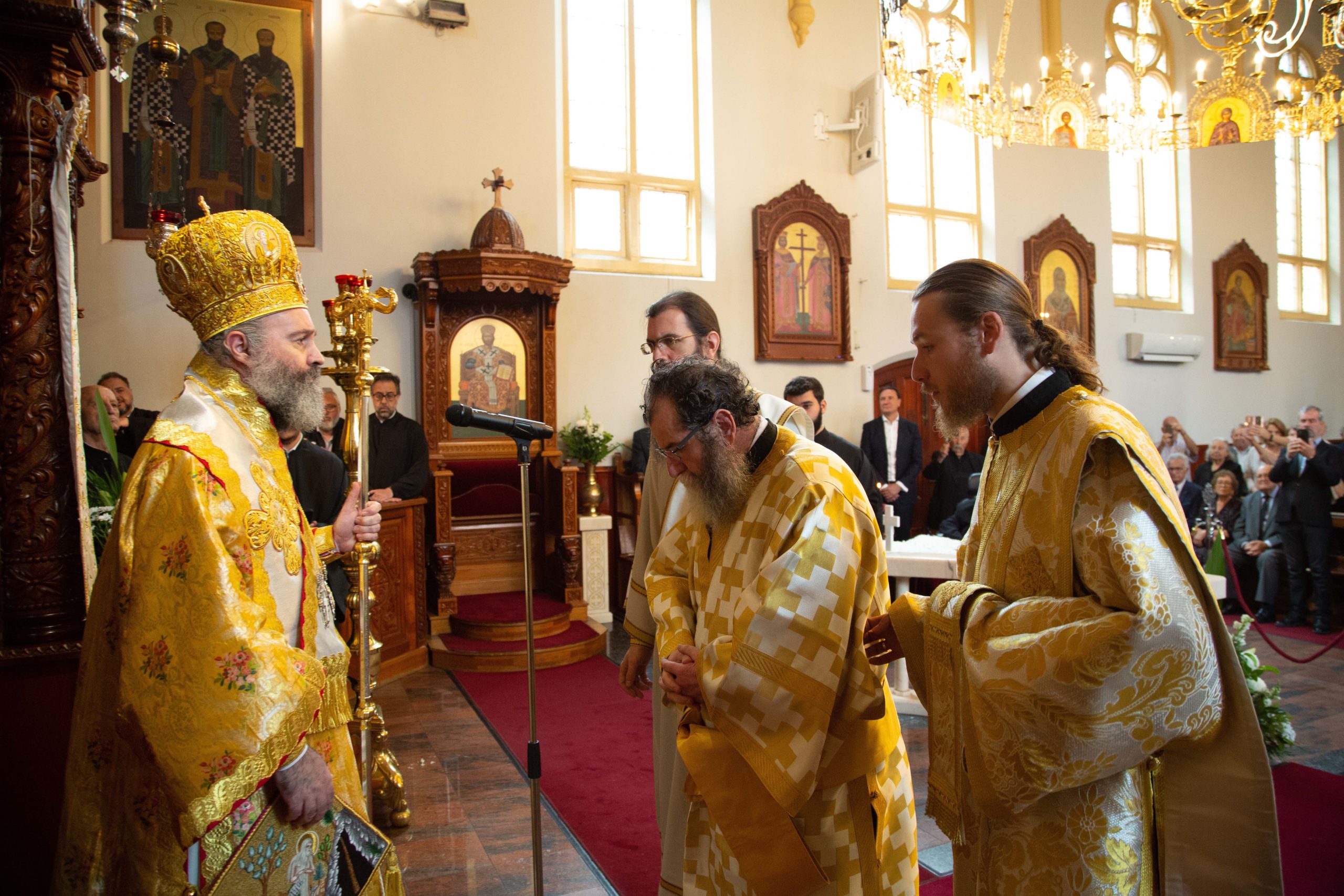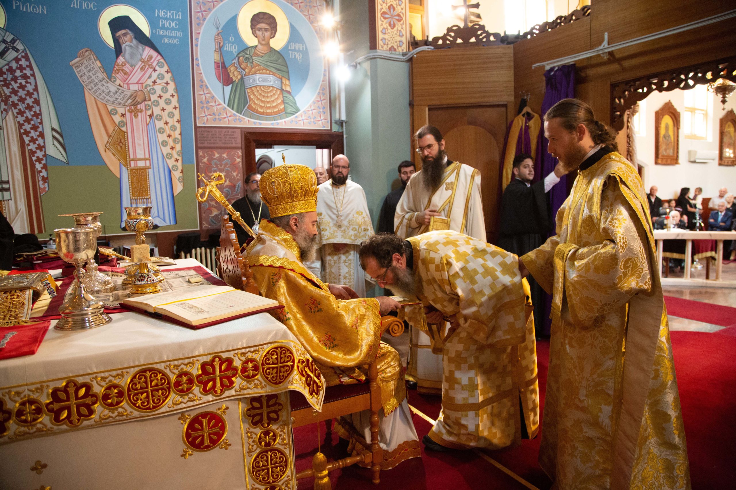 Πλαισιούμενος από τους Θεοφιλεστάτους Επισκόπους Κερασούντος κ. Ευμένιο και Σωζοπόλεως κ. Κυριακό, τον Πρωτοσύγκελλο της Ιεράς Αρχιεπισκοπής, Πανοσιολογιώτατο Αρχιμανδρίτη του Οικουμενικού Θρόνου κ. Χριστοφόρο Κρικέλη, και από πολλούς κληρικούς της Περιφέρειας Northcote, ο Σεβασμιώτατος καλωσόρισε με πατρικούς λόγους τον νέο Διάκονο στην ιερατική οικογένεια της Ιεράς Αρχιεπισκοπής Αυστραλίας.