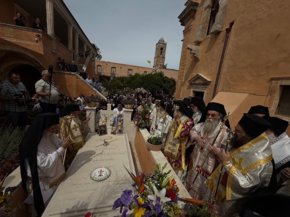 Κατά το πολυαρχιερατικό συλλείτουργο, προεξάρχοντος του Σεβ. Αρχιεπισκόπου Κρήτης κ. Ευγενίου, έλαβαν μέρος οι Σεβ. Μητροπολίτες Γορτύνης και Αρκαδίας κ. Μακάριος, Αρκαλοχωρίου, Καστελλίου και Βιάννου κ. Ανδρέας, Βελγίου κ. Αθηναγόρας, Κισάμου και Σελίνου κ. Αμφιλόχιος, Πέτρας και Χερρονήσου κ. Γεράσιμος, Ιεραπύτνης και Σητείας κ. Κύριλλος, Ρεθύμνης και Αυλοποτάμου κ. Πρόδρομος, ο Θεοφιλ. Επίσκοπος Μεσαορίας κ. Γρηγόριος, και παρέστησαν συμπροσευχόμενοι ο Σεβ. Μητροπολίτης Λάμπης, Συβρίτου και Σφακίων κ. Ειρηναίος, και οι Θεοφιλ. Επίσκοποι Ευμενείας κ. Ειρηναίος και Κνωσού κ. Μεθόδιος.