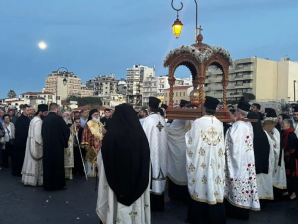 Προηγήθηκε ο Μέγας Πανηγυρικός Εσπερινός στον ιστορικό ναό του Ηρακλείου, κατά τον οποίο χοροστάτησε ο Σεβ. Αρχιεπίσκοπος Κρήτης και Πρόεδρος της Ιεράς Επαρχιακής Συνόδου της Εκκλησίας Κρήτης κ. Ευγένιος, με τη συμμετοχή του Ιερού Κλήρου της Ιεράς Αρχιεπισκοπής Κρήτης.