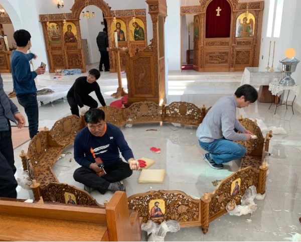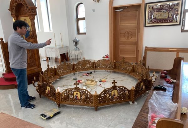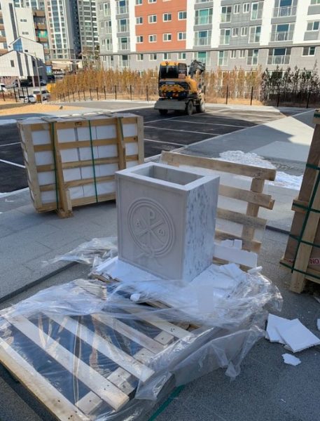 Με κοντέινερ από την Ελλάδα μεταφέρθηκε η μαρμάρινη Αγία Τράπεζα και ο ξυλόγλυπτος Πολυέλαιος για τον νέο ιερό ναό της Κοιμήσεως της Θεοτόκου στην πόλη Jeonju.