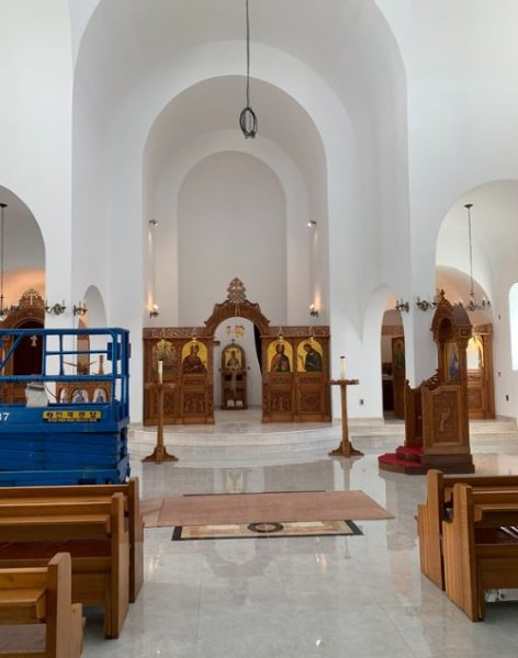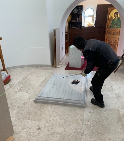 Όλοι εργάστηκαν φιλότιμα και υποδειγματικό μέχρι το βράδυ στις 8:30 προκειμένου να ολοκληρωθεί η δύσκολη εργασία της τοποθέτησης της Αγίας Τραπέζης στο Ιερό Βήμα, αλλά και να γίνει η συναρμολόγηση και το κρέμασμα του Πολυελαίου. Το τελικό αποτέλεσμα ήταν θαυμάσιο και δικαίωσε τους κόπους όλων.