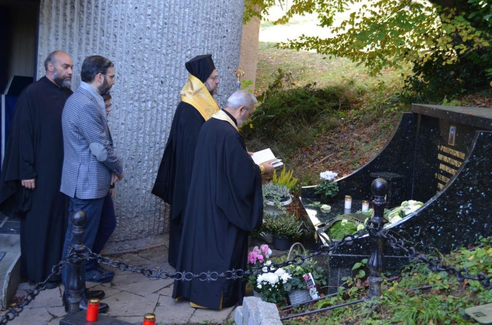 Μετά το πέρας του Μνημοσύνου τελέσθηκε Τρισάγιο επί του τάφου του μακαριστού Ιεράρχου, ευρισκομένου στον περίβολο του Ορθοδόξου Κέντρου.