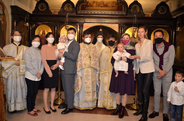 Βαπτισματική θεία Λειτουργία τελέσθηκε στον Ιερό Ναό του Αγίου Μαξίμου του Γραικού, κατά την οποία έλαβαν τα Μυστήρια του Αγίου Βαπτίσματος και του Χρίσματος η Σοφία Sion Kwon κόρη του Διονυσίου Saebyeok Kwon και της Κατερίνας Hyunjin Park, και εγγονή της πρεσβυτέρας Χάρης Sinsil Hwang και του π. Παύλου Eongeon Kwon, και η Σωτηρία Miya Kim κόρη του Εμμανουήλ Haneul Kim και της Κατερίνας Martynenko.