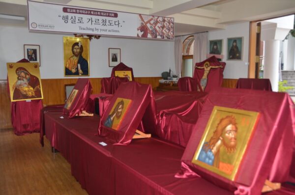 Την Κυριακή των Αγίων Πάντων (23/6/2019) μετά την θεία Λειτουργία πραγματοποιήθηκε στον προαύλιο χώρο του Καθεδρικού Ιερού Ναού του Αγίου Νικολάου στην Σεούλ Έκθεση Βυζαντινών Εικόνων, με έργα των σπουδαστών, που συμμετείχαν στα Μαθήματα Αγιογραφίας από 20 Μαΐου έως 22 Ιουνίου.
