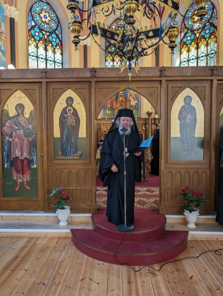 Μετά την απόλυση της Θείας Λειτουργίας, τον Ποιμενάρχη προσεφώνησε εκ μέρους του Ιερού Κλήρου, των Εκκλησιαστικών Συμβουλίων και της νεολαίας ο Πανοσιολ. Αρχιμανδρίτης κ. Βαρθολομαίος Ιατρίδης, Εφημέριος του Καθεδρικού Ναού Στοκχόλμης, ο οποίος προσέφερε στον εορτάζοντα Μητροπολίτη αρχιερατικό εγκόλπιο.