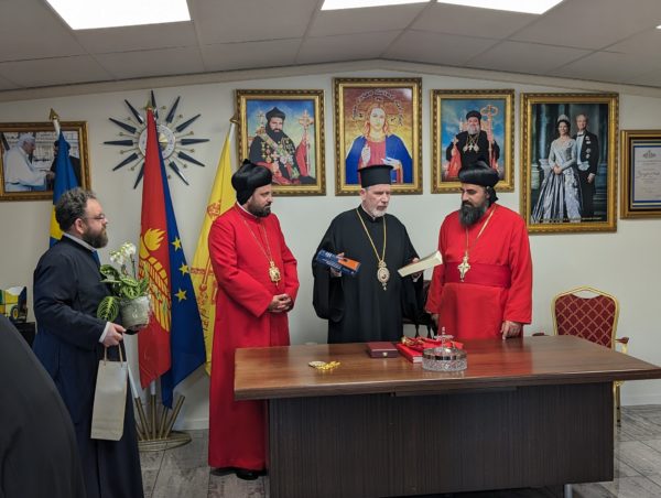 Το απόγευμα της ιδίας και στον αυτό αερολιμένα, ο Ποιμενάρχης υπεδέχθη τον Σεβασμιώτατο Μητροπολίτη Κυδωνιών κ. Αθηναγόρα, ο οποίος προσήλθε κομίζων τις Πατριαρχικές και Πατρικές ευχές της Α. Θ. Παναγιότητος, του Οικουμενικού Πατριάρχου κ.κ. Βαρθολομαίου, καταθέτοντας συγχρόνως και τις προσωπικές συγχαρητήριες ευχές.