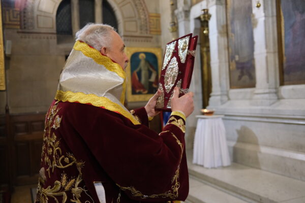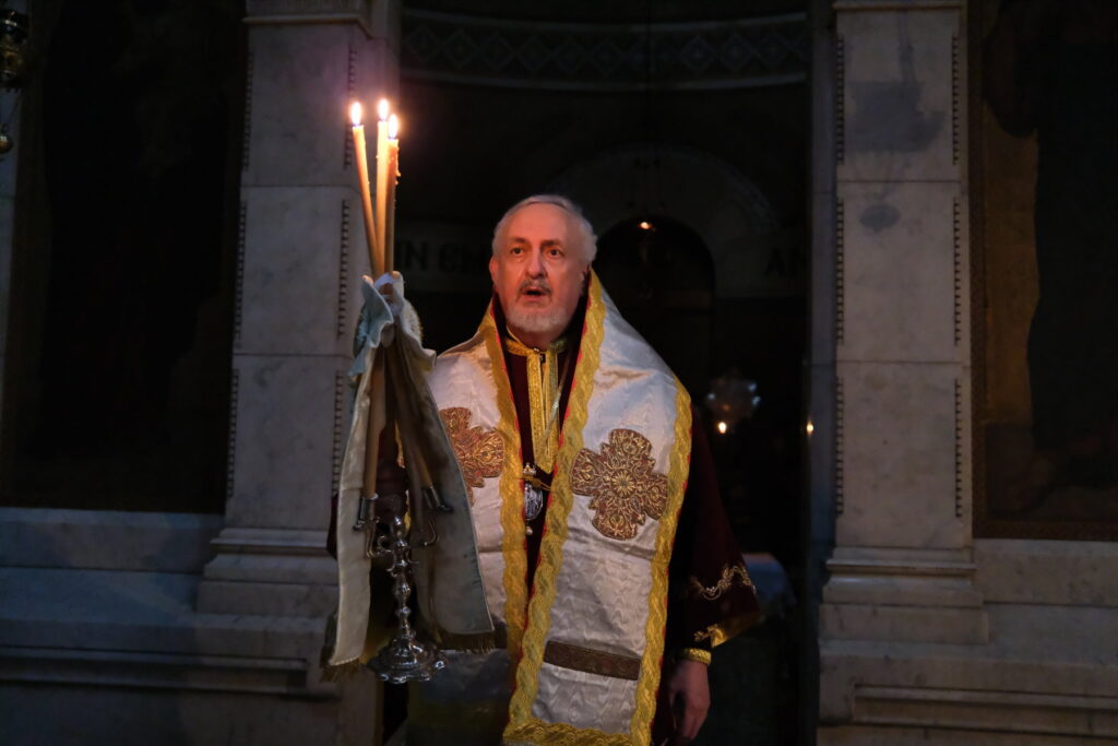 Ο Σεβασμιώτατος απηύθυνε δέηση προς τον Αναστάντα Χριστό για την γρήγορη εύρεση κατάλληλων φαρμάκων για την αντιμετώπιση της πανδημίας και προσευχήθηκε για το νοσηλευτικό προσωπικό στη Γαλλία, την Ελλάδα και όλο τον κόσμο, που αγωνίζονται καθημερινά, με την ελπίδα του χρόνου όλοι μαζί να εορτάσουμε στις εκκλησίες μας την Ανάσταση του Κυρίου.