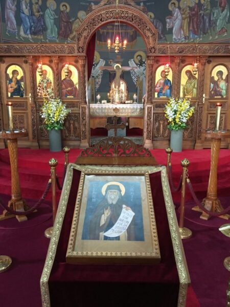 Στον Μεγάλο Εσπερινό και στον Όρθρο της εορτής εψάλλη η Ακολουθία, την οποία έλαβε η Μητρόπολη λίαν ευγενώς από την Ιερά Πατριαρχική και Σταυροπηγιακή Μονή του Τιμίου Προδρόμου Essex λίγο καιρό πριν από την εορτή, και ανατυπώσε την εικόνα του Οσίου την οποία επίσης έλαβε ηλεκτρονικά από την Ιερά Μονή.