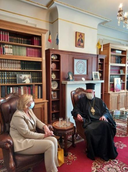 Η συνάντηση πραγματοποιήθηκε με πρωτοβουλία της κ. Πρέσβεως, η οποία θέλησε να συναντήσει τον επικεφαλής των Ορθοδόξων έναντι του κράτους και να ενημερωθεί για την ιστορία και τις δράσεις της τοπικής Εκκλησίας.