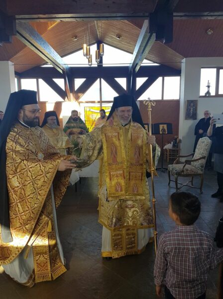 Την επομένη, Κυριακή, 7 Απριλίου 2019, τελέστηκε ο Όρθρος και η Αρχιερατική Θεία Λειτουργία, προεξάρχοντος του Ποιμενάρχου κ. Κλεόπα, και η τελετή των Θυρανοιξίων στις εγκατατάσεις της νέας ενορίας. Στην Θεία Λειτουργία συμμετείχαν οι Παν. Αρχιμανδρίτες κ.κ. Σωφρόνιος Γκουτζίνης, Ιάκωβος Βασιλείου, Δαμασκηνός Μούρτζης και Αλέξανδρος Λουκάτος. Τους ύμνους απέδωσε ο κ. Δημήτριος Μπατσέλας.