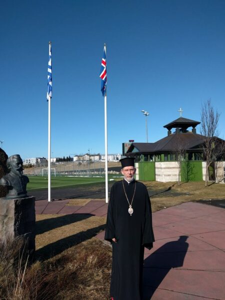 Σχεδόν ταυτόχρονα στο αεροδρόμιο του Ρέϊκιαβικ αφίχθησαν και οι εξ Ελλάδος κληρικοί Παν. Αρχιμανδρίτες κ. Σωφρόνιος Γκουτζίνης, Πρωτοσύγκελος της Ιεράς Μητροπόλεως Ξάνθης και Περιθεωρίου και κ. Ιάκωβος Βασιλείου, πρώην Πρωτοσύγκελος της Ιεράς Μητροπόλεως Κασσανδρείας και Εφημέριος της Ενορίας Παμμεγίστων Ταξιαρχών Νέου Μαρμαρά Χαλκιδικής.