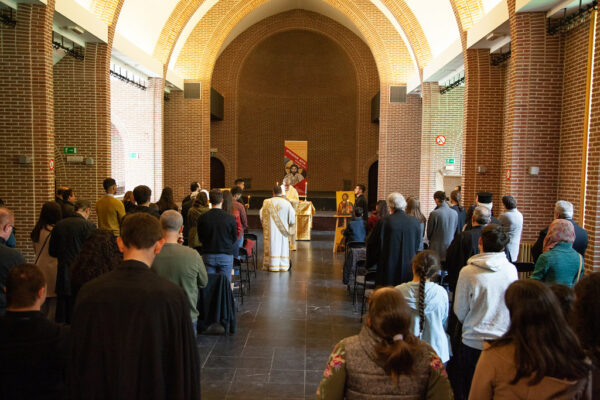Η ημερίδα ξεκίνησε με την Θεία Λειτουργία, την οποία τέλεσε ο Σεβασμιώτατος Μητροπολίτης Βελγίου και Έξαρχος Κάτω Χωρών και Λουξεμβούργου κ. Αθηναγόρας, με την απόδοση των ύμνων σε διάφορες γλώσσες. Κατά το πέρας της Θείας Λειτουργίας ο Μητροπολίτης Αθηναγόρας εξέφρασε την χαρά του για την πραγματοποίηση της σύναξης των κληρικών του, μαζί με νέους από τις ενορίες της Μητροπόλεως, τόνισε την μεγάλη σημασία της ενίσχυσης του ποιμαντικού έργου της τοπικής Εκκλησίας όσον αφορά τους νέους και ευχήθηκε καλή πρόοδο στις διαλέξεις και το πλούσιο πρόγραμμα της ημερίδας.