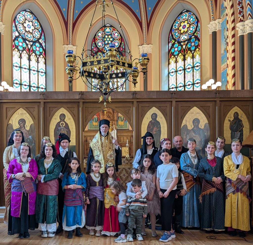 Ο Σεβασμιώτατος συνεχάρη, επίσης, τα παιδιά για την παρουσία τους, ντυμένα με παραδοσιακές Ποντιακές στολές, ευχαρίστησε δε τον Πρόεδρο του Συλλόγου «Εύξεινος Πόντος» Στοκχόλμης, Εντιμ. κ. Ηλία Μανωηλίδη, και την Ευγεν. κ. Αλεξάνδρα Ζορπίδου, για την επιμέλεια της ενδυμασίας των νέων με παραδοσιακές στολές.