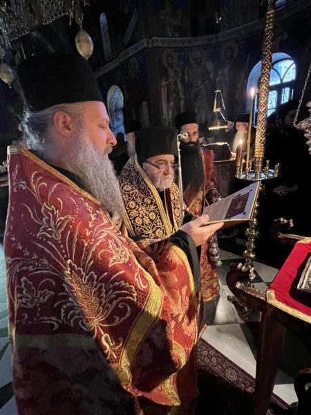 Ο Μητροπολίτης Γέρων Δέρκων κ. Απόστολος χοροστάτησε χθες στην ακολουθία της Γ’ Στάσεως των Χαιρετισμών προς την Υπεραγία Θεοτόκο στην Ιερά Μονή Σίμωνος Πέτρας Αγίου Όρους, προσκληθείς υπό της ως άνω Μοναστικής Αδελφότητος.