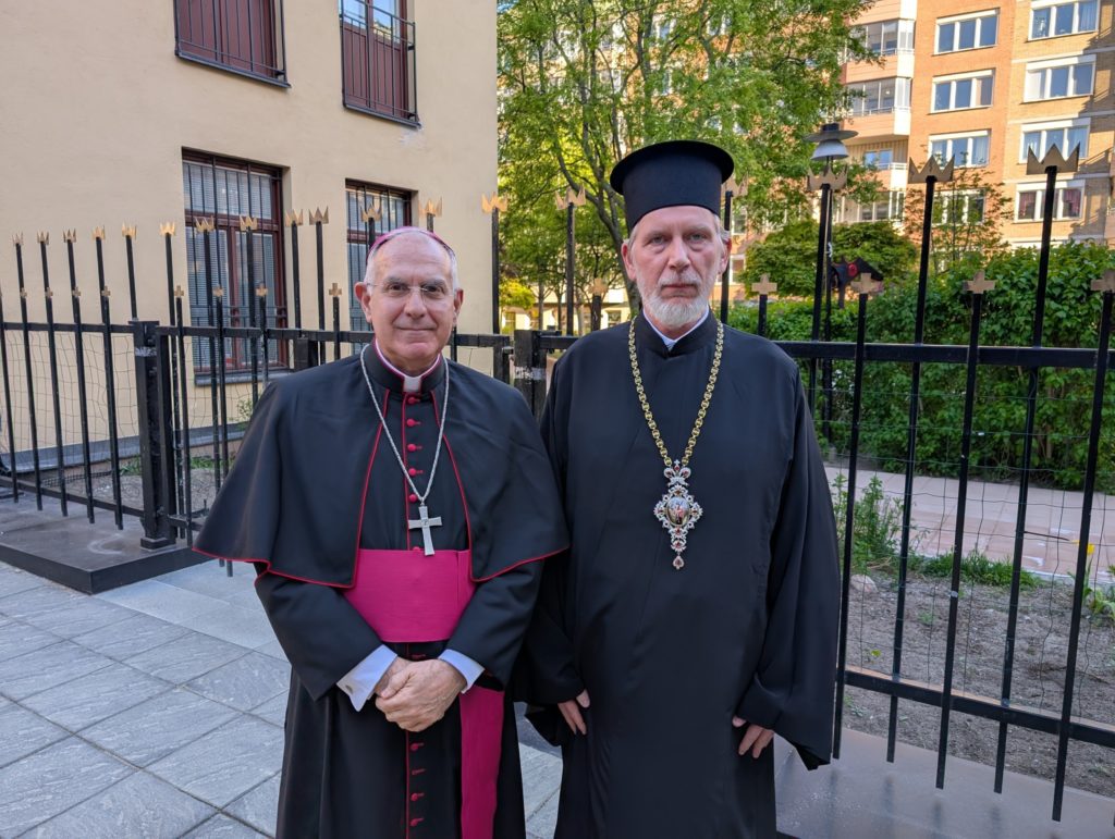 Ο Σεβ. Μητροπολίτης Σουηδίας και πάσης Σκανδιναυΐας κ. Κλεόπας, ευγενώς προσκληθείς από τον Αποστολικό Νούντσιο της Αγίας Έδρας στην Στοκχόλμη, Σεβ. Αρχιεπίσκοπο Orange κ. Julio Murat, παρέστη στην τελεσθείσα Θεία Λειτουργία Ευχαριστιακή Σύναξη (Thanksgiving Mass), με αφορμή την εκλογή του νέου Ποντίφικα Λέοντα ΙΔ´, στον Καθεδρικό Ναό Αγίου Ερρίκου των Ρωμαιοκαθολικών (Saint Eric’s Catholic Cathedral), στην Στοκχόλμη, το απόγευμα της Παρασκευής, 16 Μαΐου 2025.