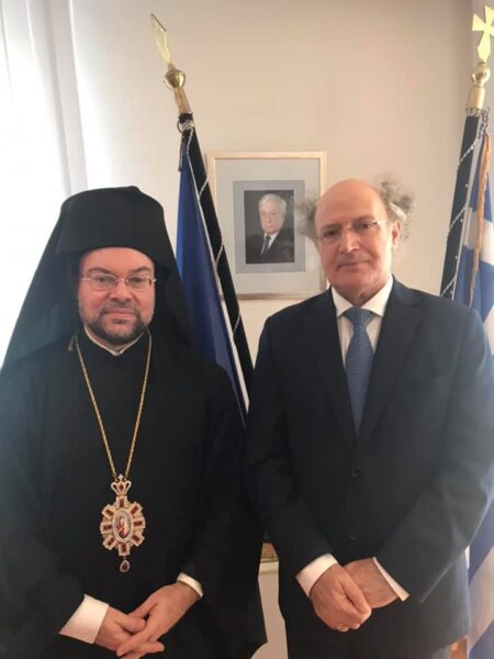 Ο προσφάτως εκλεγείς εκ της Αγίας και Ιεράς Συνόδου του Οικουμενικού Πατριαρχείου, Νέος Επίσκοπος της πάλαι ποτέ διαλαμψάσης Επισκοπής Απολλωνιάδος, Βοηθός Επίσκοπος της Ιεράς Μητροπόλεως Βελγίου, κ. Ιωακείμ, με τον εξοχώτατατο Πρέσβη της Ελλάδος εις το Βέλγιο κ. Διονύσιο Καλαμβρέζο είς την Ελληνική Πρεσβεία των Βρυξελλών στις 24 Φεβρουαρίου 2020, όπου έλαβε χώρα η ευλόγησις καί η κοπή της Βασιλόπιτας.