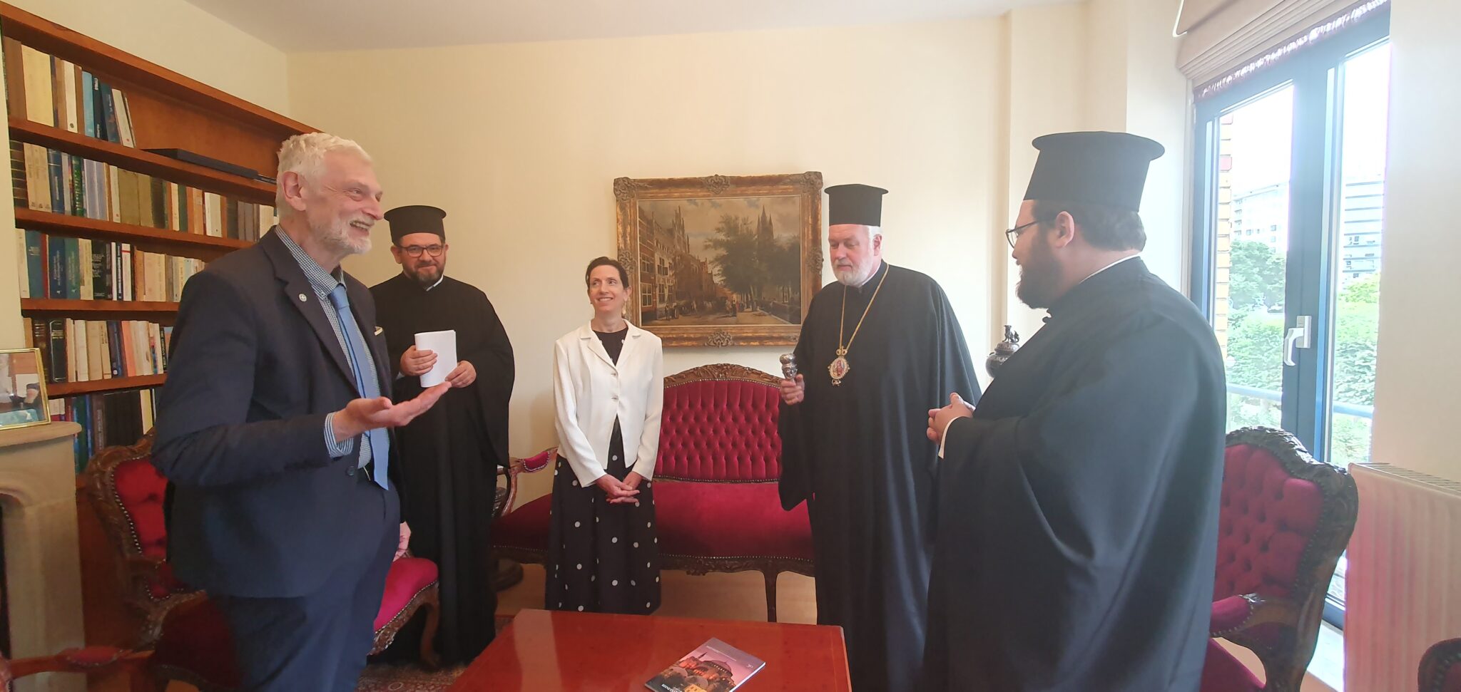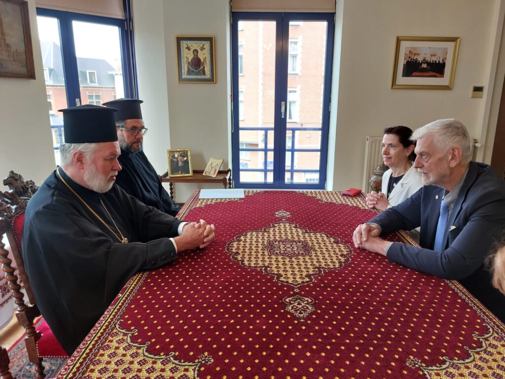 Ο Έλλην πολιτικός περιοδεύων στο Βέλγιο θέλησε να τελειώσει και να συναντήσει τον Μητροπολίτη του Οικουμενικού Θρόνου, ενημερώθηκε για την ιστορία και τη διαγραφή των Ελλήνων και των κάθε καταγωγής Ορθοδόξων στις τρεις χώρες του Μπενελούξ, καθώς και για τα διάφορα ζητήματα και τις προκλήσεις που αντιμετωπίζουν.