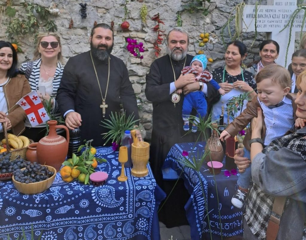 Το πρωί της Πέμπτης, 3 Νοεμβρίου 2022, τελέσθηκε στον Ιερό Ναό Αγίας Φωτεινής ο Όρθρος και η Θεία Λειτουργία στα γεωργιανά υπό του Αρχιμ. κ. Ηλία Jinjolava, χοροστατούντος του οικείου Μητροπολίτη Σμύρνης κ. Βαρθολομαίου. Κατ’ αυτήν εκκλησιάστηκαν η κ. Makvala Kharebava, εκ προσώπου του επί τιμή Προξενείου της Γεωργίας εν Σμύρνη, και ικανός αριθμός γεωργιανών πιστών.