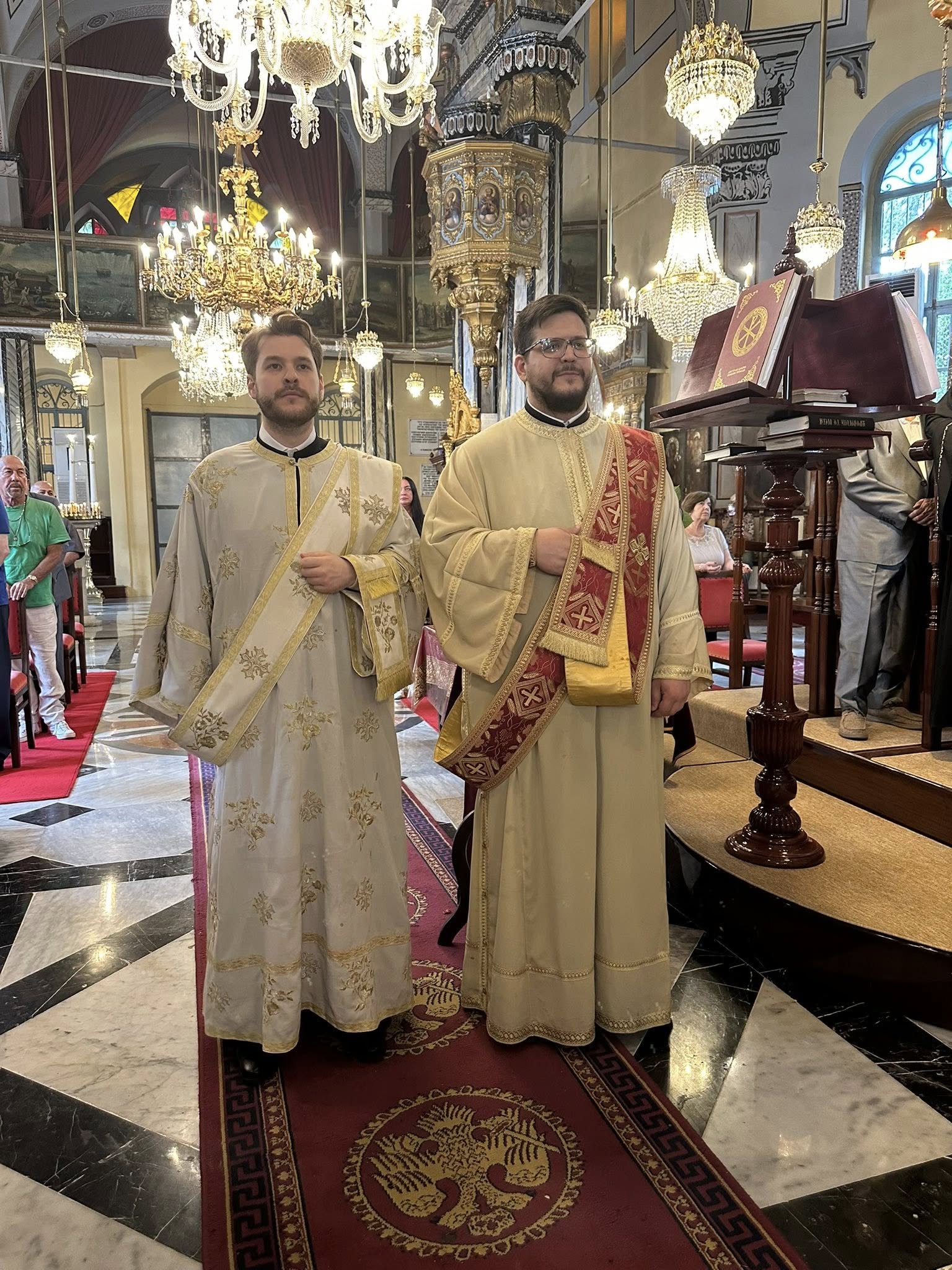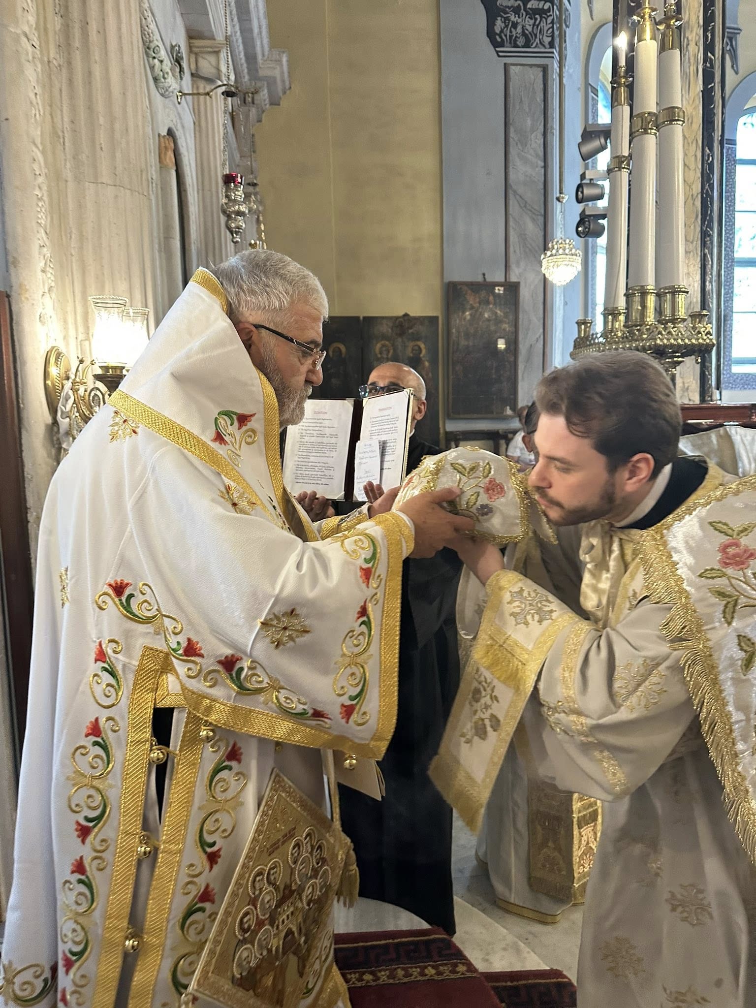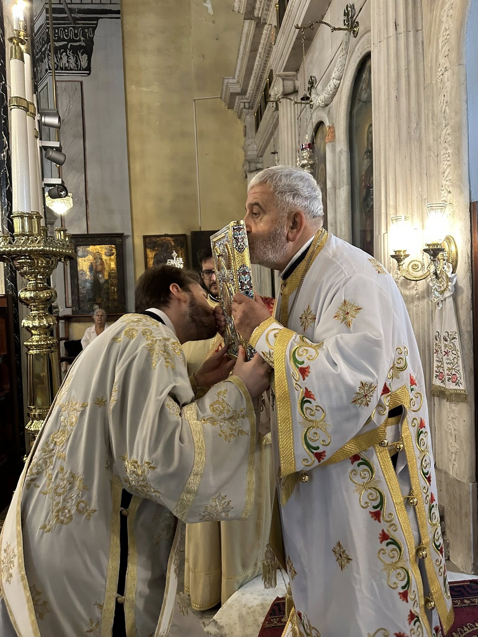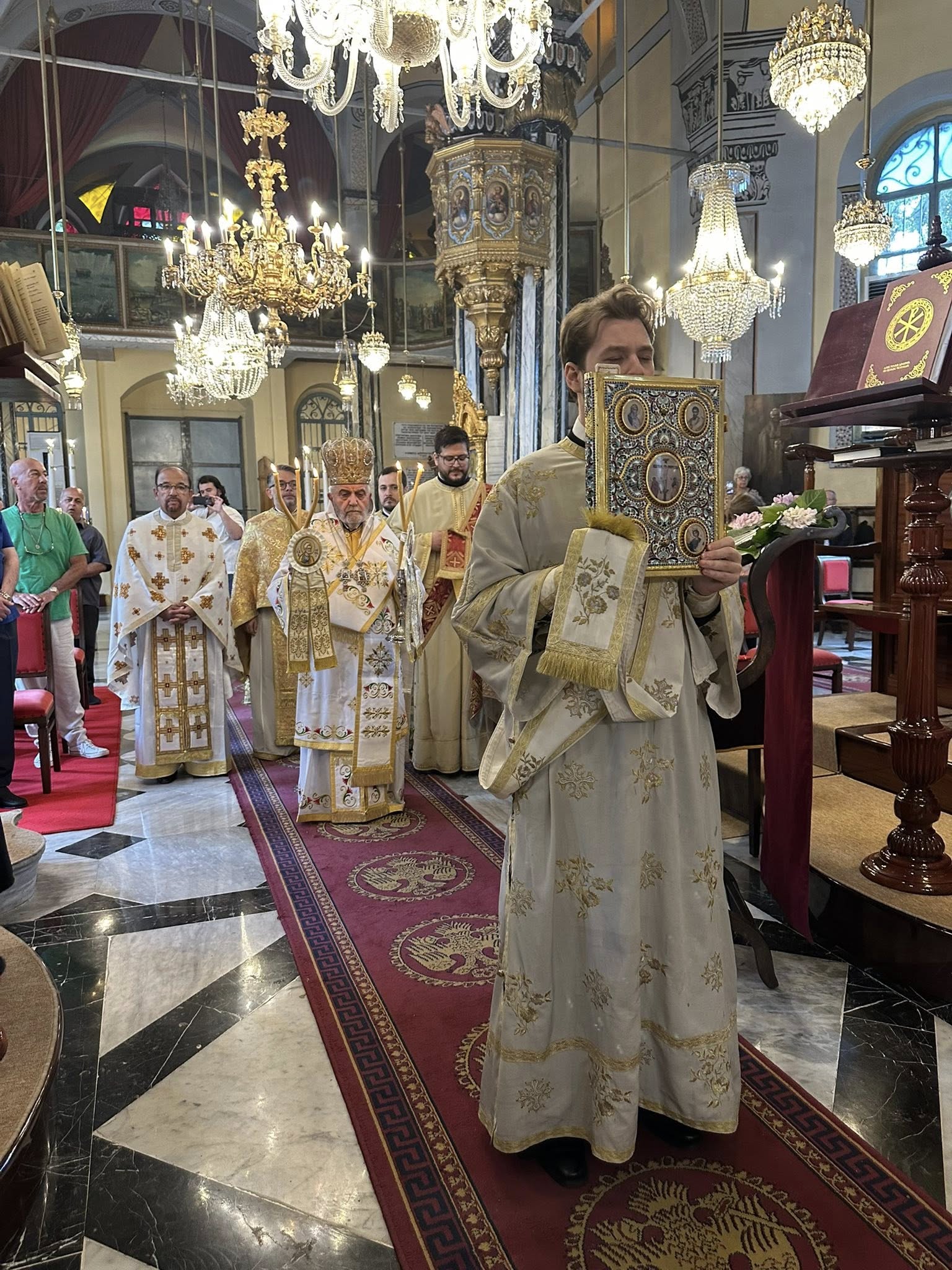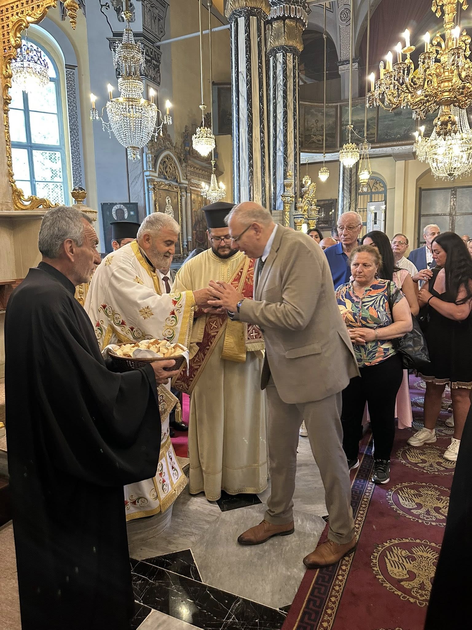 Στο τέλος της Θείας Λειτουργίας ευχήθηκαν στον Σεβασμιώτατο, ο Εκπρόσωπος της Α. Θειοτάτης Παναγιότητος, Σεβ. Μητροπολίτης Ικονίου κ. Θεόληπτος, ο Προϊστάμενος του Ιερού Μητροπολιτικού Ναού Αγίας Παρασκευής Θεραπείων π. Αδαμάντιος Κοκκινάκης εκ μέρους του Ιερού Κλήρου, και ο Γενικός Γραμματέας του Υπουργείου Εσωτερικών της Ελλάδος κ. Αθανάσιος Μπαλέρμπας.