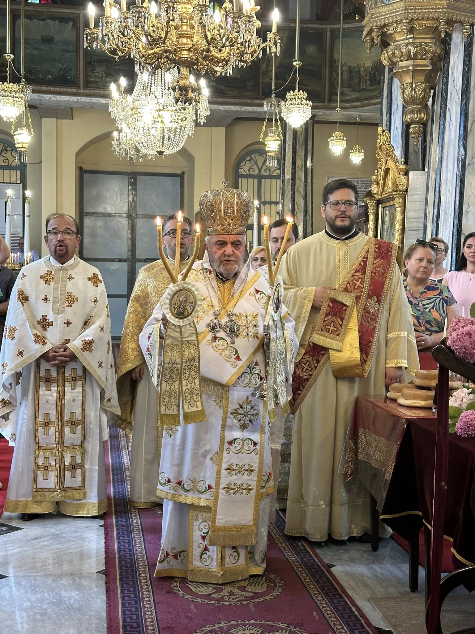 Αφ’ εσπέρας τελέσθηκε ο Μέγας Πανηγυρικός Εσπερινός και ο Όρθρος της Εορτής και το πρωί η Αρχιερατική Θεία Λειτουργία μετ’ αρτοκλασίας, ιερουργούντος του Σεβ. Ποιμενάρχου κ. Αποστόλου.