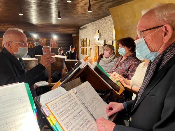 Τους ύμνους κατά την Θεία Λειτουργία έψαλε η χορωδία της γαλλοφώνου ενορίας με χοράρχη της τον Άρχοντα Πρωτοψάλτη Pierre Ronget.
