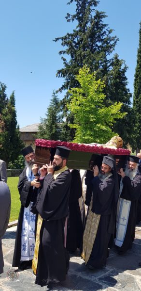 Στη συνέχεια ακολούθησε η ταφή στο Κοιμητήριο της Μονής, στο οποίο αναπαύονται επίσης και οι αείμνηστοι γονείς του μεταστάντος Ιεράρχη.