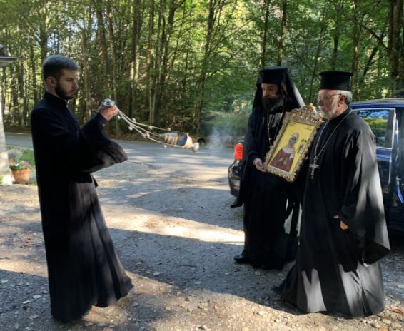 Ο ιερατικώς προϊστάμενος της Ενορίας Αγίων Πάντων Μονάχου Αρχιμανδρίτης Γεώργιος Σιώμος και ο Πρωτοπρεσβύτερος Απόστολος Μαλαμούσης μετέφεραν την εικόνα της Αγίας και στα πλαίσια μιας σύντομης τελετής την επέδωσαν στον ρωμαιοκαθολικό ιερέα κ. Josef Steinberger και την τοποθέτησαν στο εσωτερικό του παρεκκλησίου. Στο πίσω μέρος της εικόνας αναγράφηκαν τα ονόματα των δωρητών της εικόνας, εις μνημόσυνον αιώνιον.