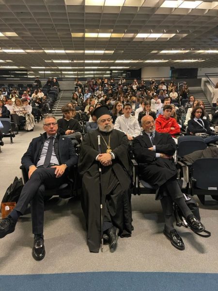 Ο Μητροπολίτης Ιταλίας κ. Πολύκαρπος στον χαιρετισμό του τόνισε, ότι “Ευρώπη σημαίνει ελληνορωμαϊκός πολιτισμός και χριστιανισμός” και κάλεσε τους μαθητές να είναι υπερήφανοι για τον Ελληνικό Πολιτισμό, την Ελληνική Γλώσσα και την Ορθόδοξη Πίστη τους.